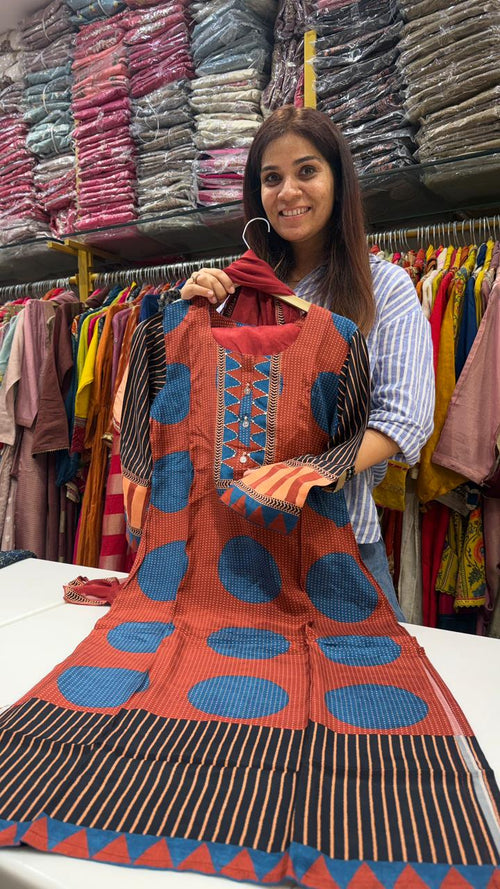 Rust & Indigo Maslin Printed Suit Set