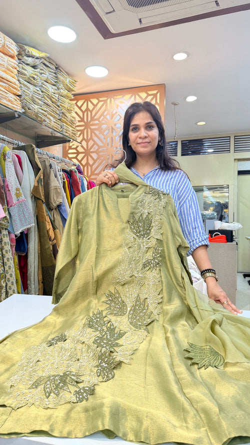 Lime Meadow Mul Cotton Embroidery Suit Set