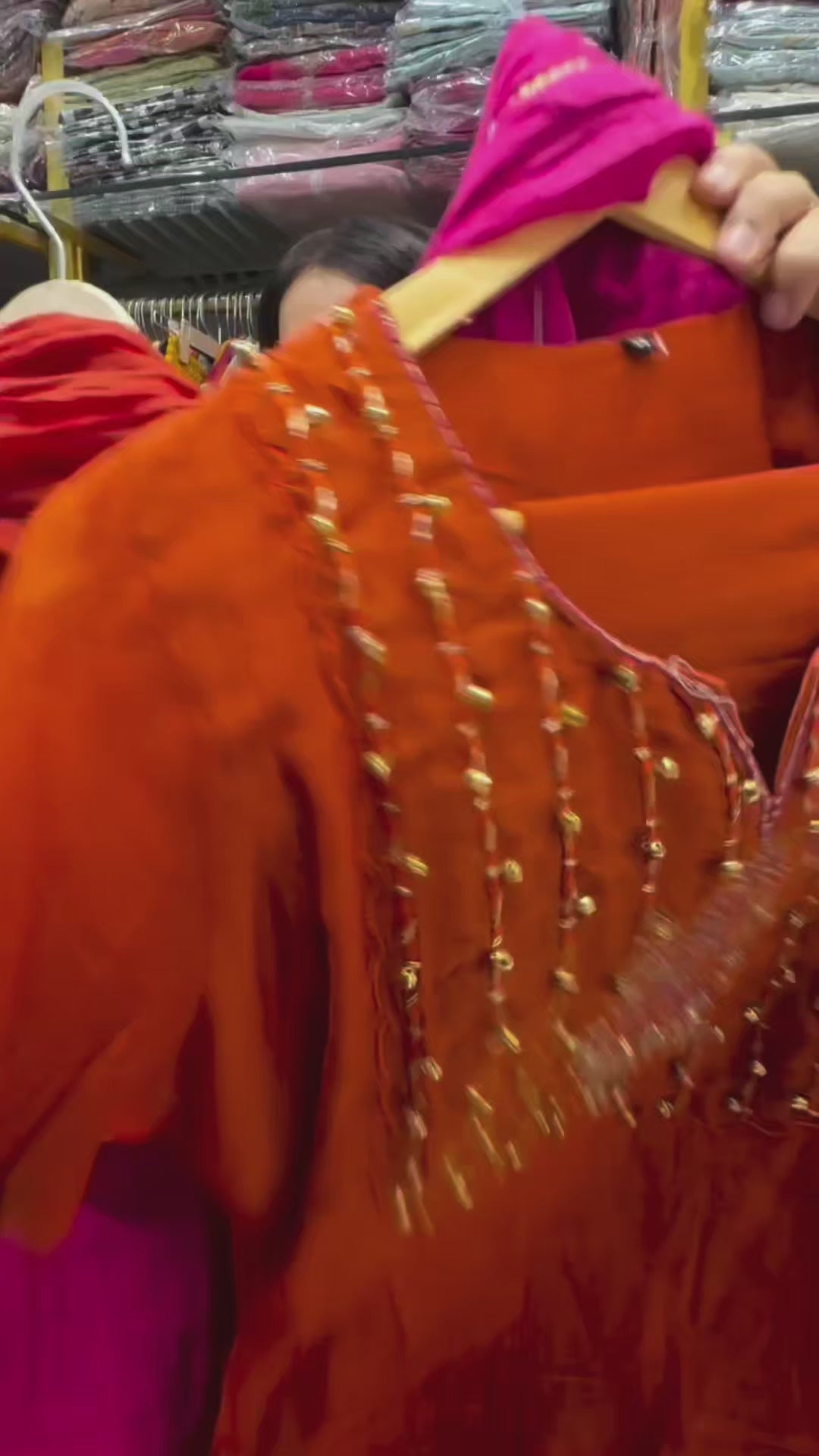 The rich festive hue paired with refined embellishment makes it perfect for celebrations, festive gatherings, family functions, and wedding events. Lightweight, comfortable, and effortlessly stylish, this ensemble blends traditional charm with modern sophistication — a signature expression of Raas Creation’s timeless festive style.